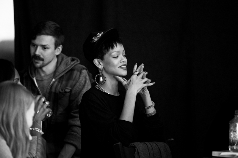 Długo wyczekiwana autorska kolekcja Rihanny dla River Island będzie miała swoją premierę podczas londyńskiego Tygodnia Mody, 16 lutego. Na światło dzienne stopniowo wychodzą kolejne zdjęcia przedstawiające artystkę podczas pracy