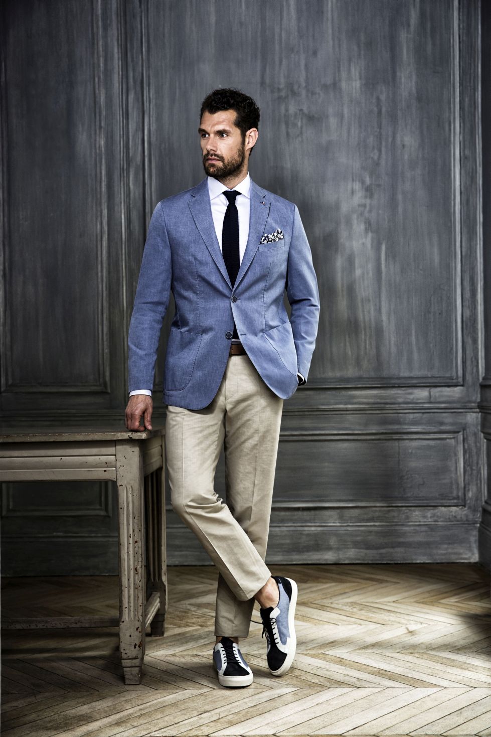 na dzianinach jak i koszulach widoczna jest nowoczesna i kreatywna idea „Mieszaj i łącz”. Przejawiająca się w detalach ubrań jako miks wzorów, kontrastowe szwy, odmienne struktury materiałów czy farbowania. Must-have tego sezonu to koszule we wzory indygo i jednokolorowe modele z tkaniny o wyglądzie denimu, a także koszulki polo.