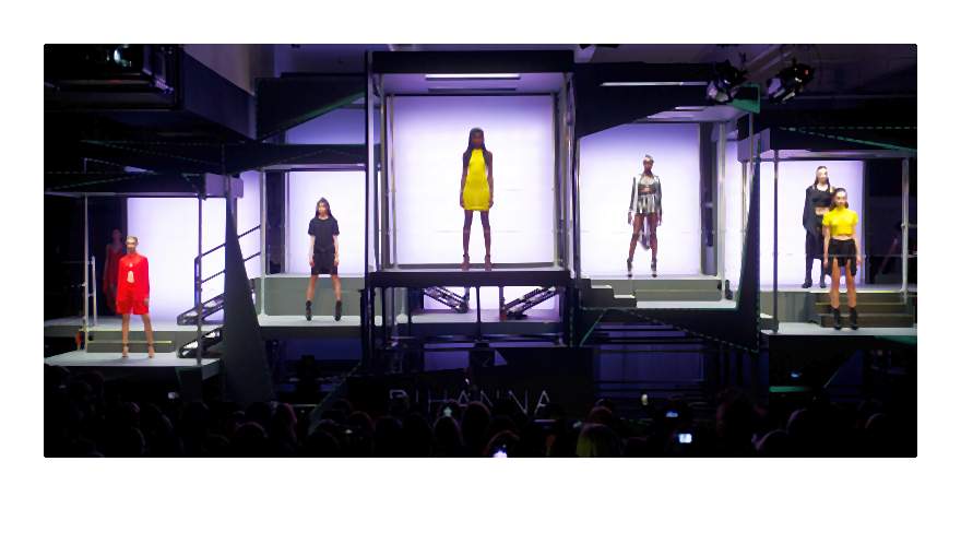 Pokaz Rihanna dla River Island stylizowali: Mel Ottenberg – stylista Rihanny oraz Adam Selman, jej projektant. Za włosy odpowiedzialny był Johnnie Sapong, który korzystał z kosmetyków Bumble and Bumble, a make up’em zajął się Sam Bryant, korzystając z produktów MAC. Choreografię opracowała Les Childs, muzykę Seb Chew. Za produkcję pokazu odpowiedzialne były firmy: My Beautiful City i Cake Group, Us3 Productions (relacja na żywo) i Live Stream.